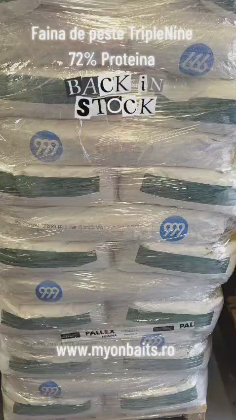 Notă importantă privind piața globală: Având în vedere situația economică fără precedent de pe piața globală a materiilor prime, făina de pește pură se găsește din ce în ce mai greu, iar prețurile au explodat la nivel mondial. În acest context dificil, Myon Baits a depus eforturi logistice și de negociere majore pentru a securiza acest lot exclusiv de la TripleNine. Oferim o materie primă de elită, garantându-ți că nu ești nevoit să faci rabat de la calitatea nadei tale, indiferent de crizele din piață.